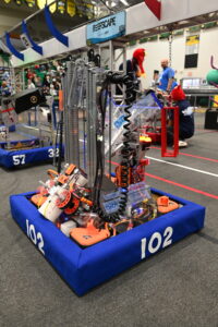 Wally was likely Team 102’s most unique machine. Wally featured a turntable with 4 arms meant to collect the shared recycling bins during the autonomous period. While the strategy was sound, Wally had many troubles throughout the competition season. Despite the troubles, Wally was honored with the Innovation in Control award, and the Creativity award twice. He also still made it to the World Championship event in St. Louis where he had fun playing the game!